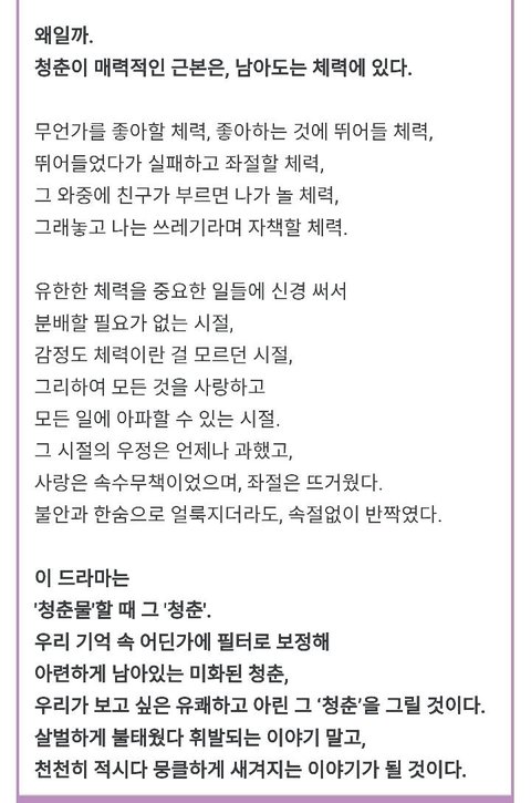 이런걸 많이 쓰다보면 는다고 하긴 하는데 이렇게 감성적이고 많은사람들이 공감할 수 있게 말을 이쁘게..뭔가 청순하고? 말로 표현할 수 없는 그런 느낌 있잖아ㅋㅋㅋ 쨋든 너무 신기함..어떻게 이런 글을 쓸 생각을 했을까..명대사들 볼때도 그런생각 듦