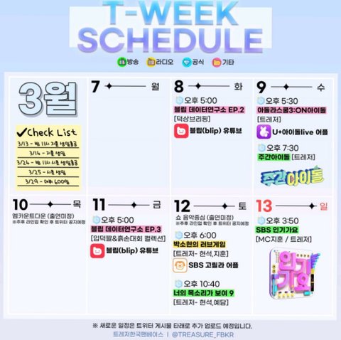 이번주 스케줄이래