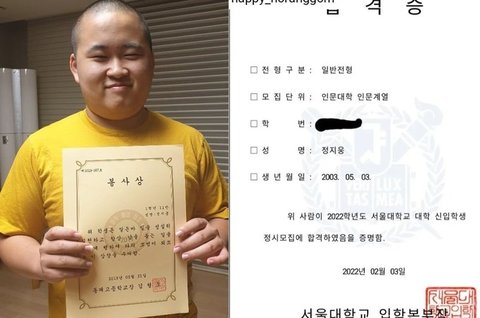 얼마 전 서울대 합격 소식을 알린