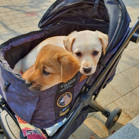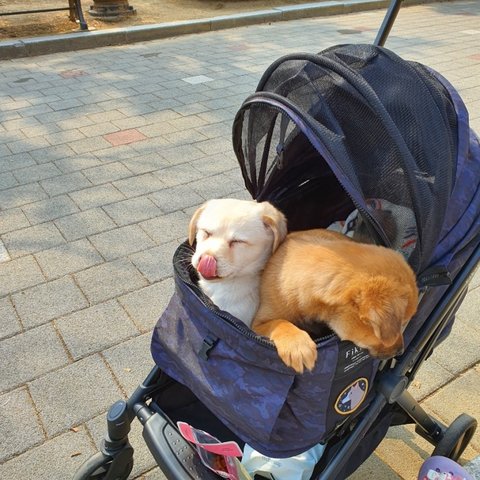 유모차는 한대뿐이라 둘둘씩 짝을 지어나갔어요.