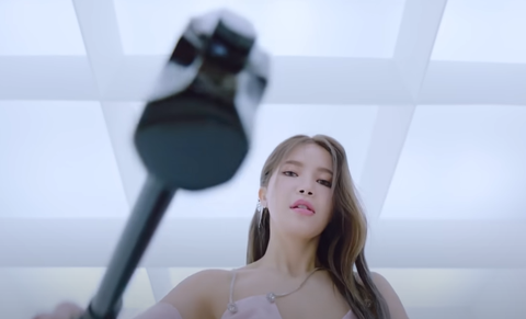 영상에는 흰색 바탕의 신비로운 공간 속에 솔라가 해머를 들고 등장해 눈길을 끈다. 이어 긴장감이 고조되는 사운드가 흐르고, 솔라의 얼굴이 클로즈업된다. 정면을 응시하던 솔라는 달려가 무언가를 부시기 시작, 이내 화려하게 꾸민 솔라의 다양한 모습들이 빠르게 교차되면서 영상에 담겨진 의미에 대한 궁금증을 고조시켰다.