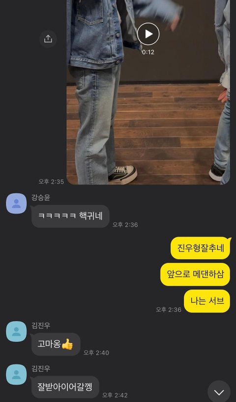 얼마 전에 올라온 단체톡 보면서도 느낀건데. 김진우는 생김새처럼 카톡 멘트도 무해하다. 그저 예쁘고 순수함 ㅋㅋ