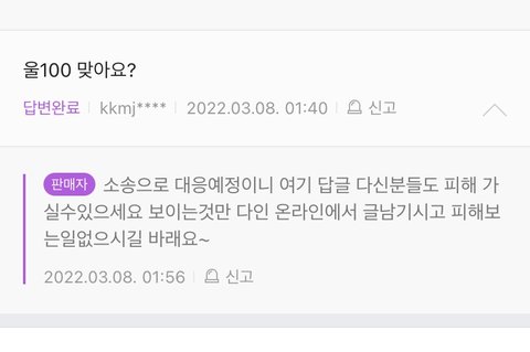 그리구 어제 새벽에 판매자분한테 고소한다구 문자왔네요