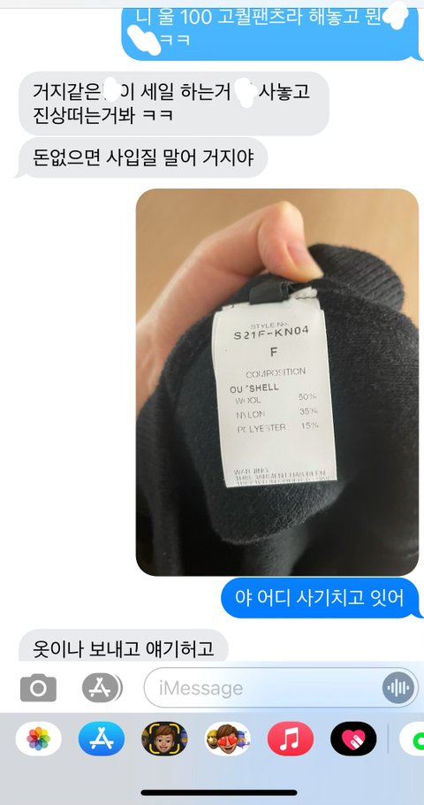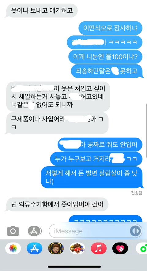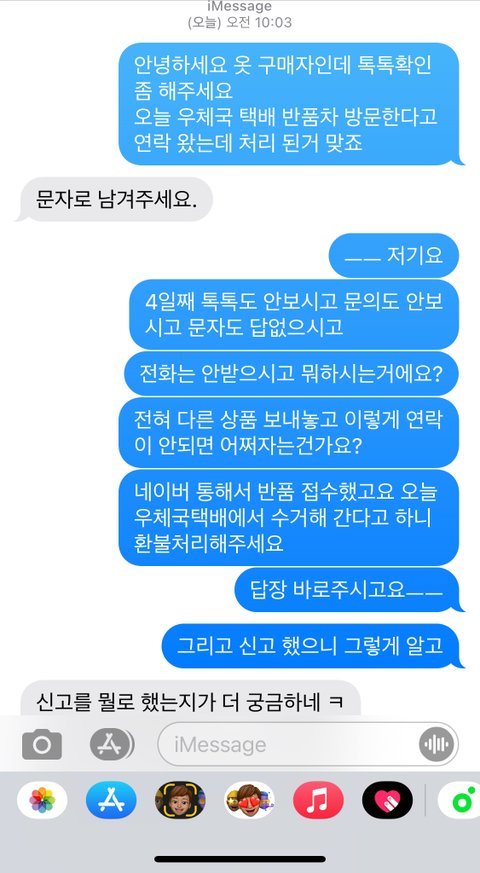 저는 옷을 정말 좋아해서 옷 많이 사봤지만 이런 판매자는 정말 처음보고 너무 화가나서 문자로 싸우는데 손이 떨리더라구요