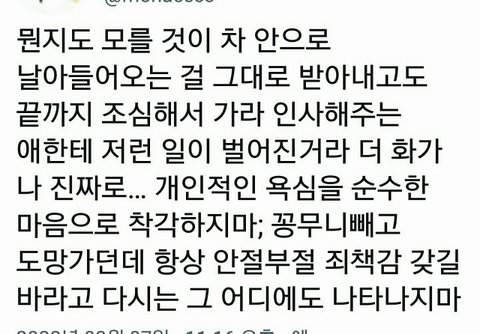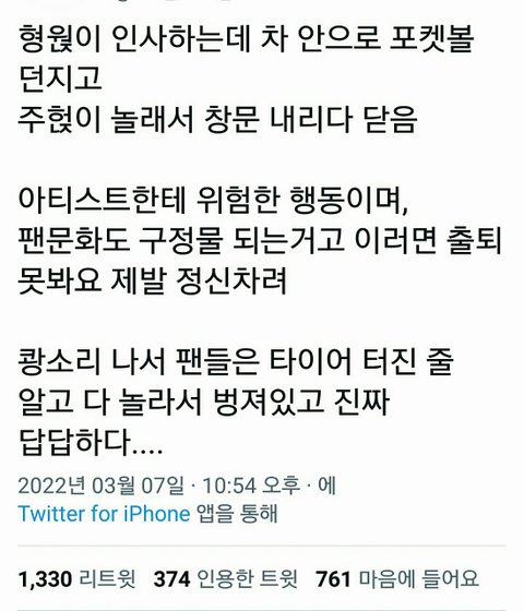 야 타팬인데 이걸 왜올림…? 공론화 해봤자 좋지도 않은걸 왜 자기얼굴에 먹칠함..