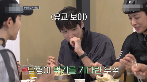 제일 맏형이 먹고나서 그제서야 후루룹 먹는 우석이