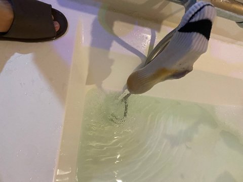 양말을 수도꼭지쪽에 씌워놨습니다