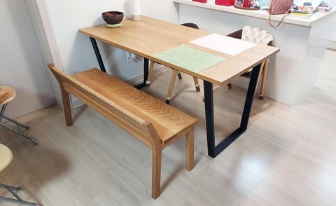 기존에 철제 다리와 화이트오크 원목 상판으로 되어 있는 의자를 리폼해보았습니다.