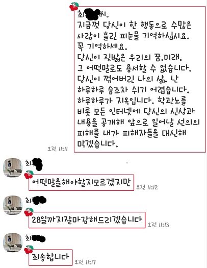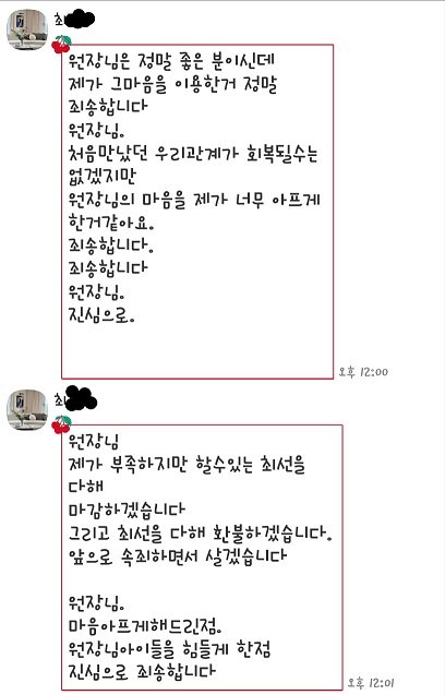 해당업자가 보내 온 사과는 아래와 같습니다. 물론 순간을 모면하기 위한 기망행위입니다.