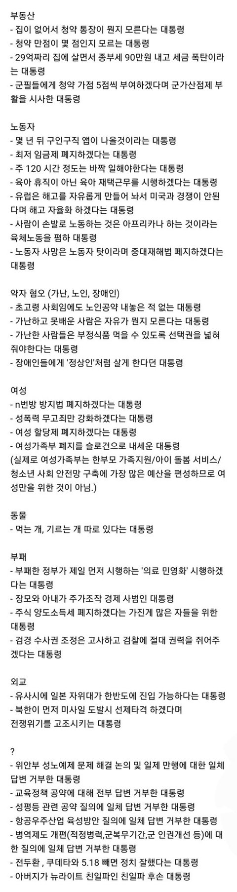 윤석열이 말한 적도 없는 이상한 말들 넣어서 선동 잘하네? 졌으면 입 닥치고 패배요인 분석하면서 반성하고 다음에 더 잘할 생각을 해야지, 상대방 머리채 잡고 자빠트려서 자기들이 잘될 생각을 계속 쳐하니까 느그들이 진거라구요. 작년 서울시장 선거 때도 오세훈한테 네거티브 ㅈㄴ했다가 더블 스코어로 쳐발려놓고 아직도 정신 못차리네