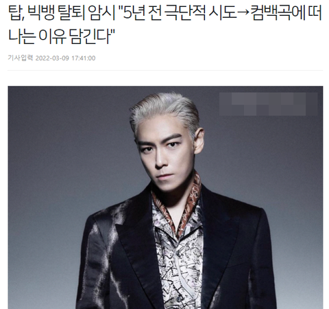 근데 탑은 재계약 안하고 이번 컴백을 마지막으로 탈퇴한다고 함
