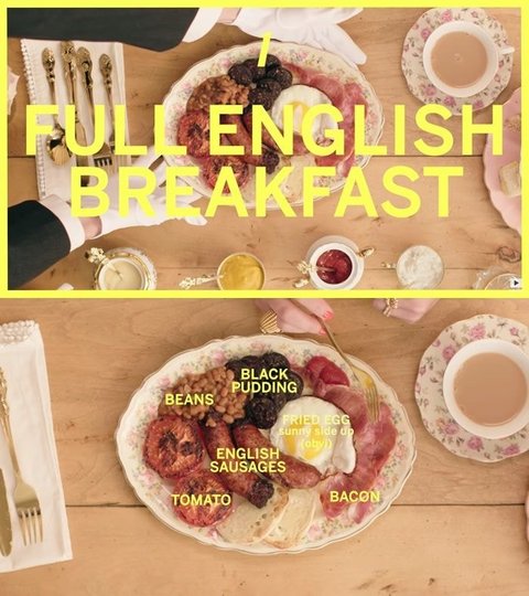 해시 브라운도 포함되는 경우가 많다. 주로 홍차와 함께 먹는다.