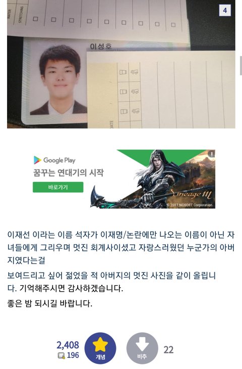 정보) 이재명의 친형 이재선씨는 유능한 회계사였으나 성남시장(이재명)의 비리를 밝히려다 성남시장 명령으로 정신병원에 입원하게 됐으며, 후에 자살당하였다