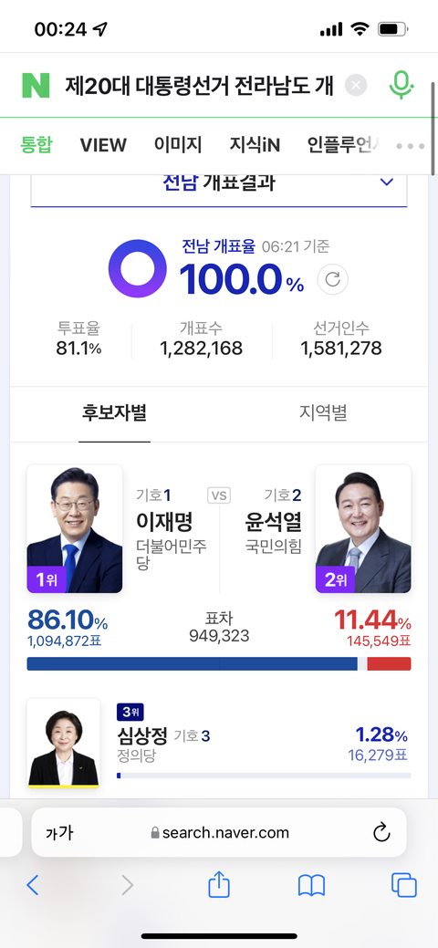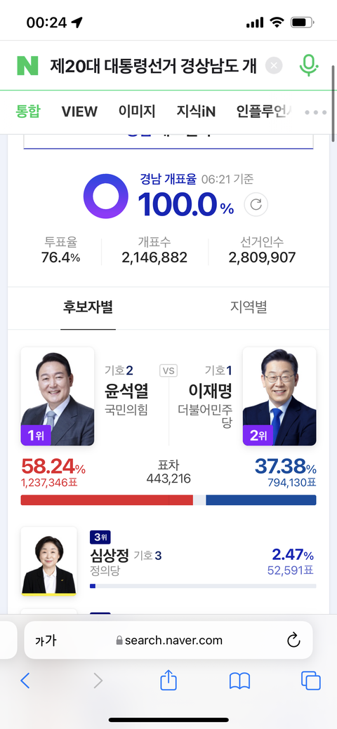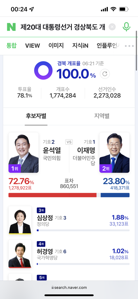 ㅋㅋㅋㅋㅋ 그게아니라 윤석열이 얼마나 별로였음 국힘지지 지역에서도 표를 안줬겠냐라고 생각해야지ㅋㅋㅋ왜 역대급 적은 표차이가 나왔는진 생각을안하고ㅋㅋㅋ 그리고 인구수가 전라도보다 두배도 넘을건데