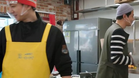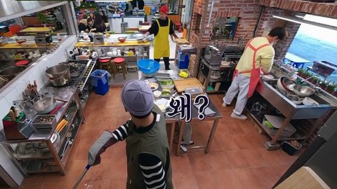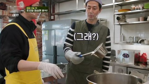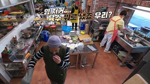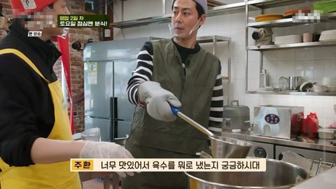 가락국수 조리 담당인 조인성에게 임주환이 물어보는데