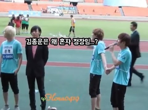 체육대회에 뜬금없이 정장을 입고 나타났다.