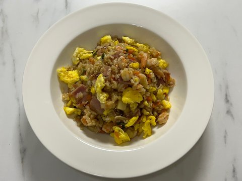 남편에게 가끔 새우볶음밥을 해줬었는데 베이컨도 넣어달라고 해서 베이컨 넣은 새우볶음밥이에요 :)❤️