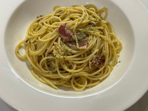 다진 마늘만 넣어서 했는데.. 역시 알리오 올리오는 실패 없죠!!! 베이컨도 조금 남아있길래 깨알 투척!!