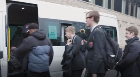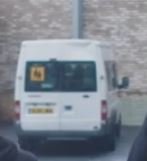 흰색차 학교 버스인가? 학교 버스 치고는 자리가 많이 없어 자가용 차 치곤 엄청커