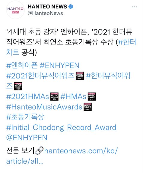 한터뮤직어워드 최연소 초동기록상