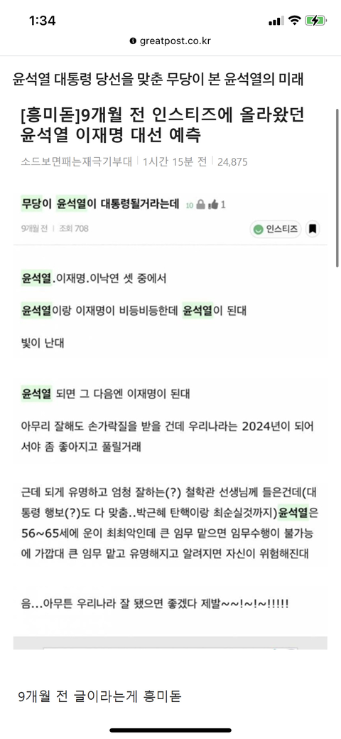 윤이 대통될거라는 무당의 예측
