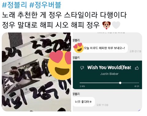 정우가 버블로 인증해준거라고 함..
