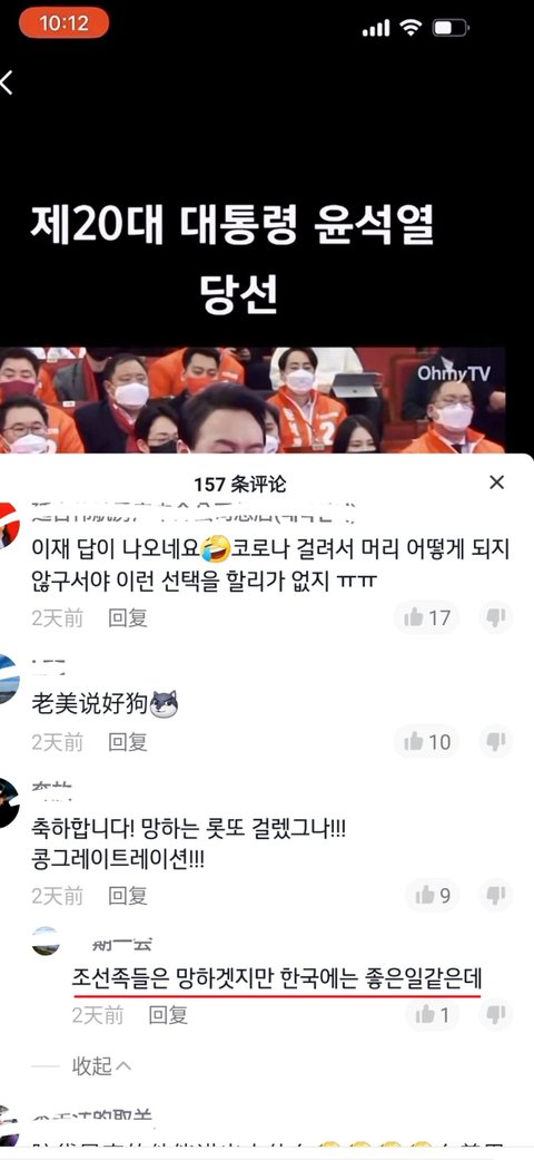 윤석열 당선에 조선족들 반응