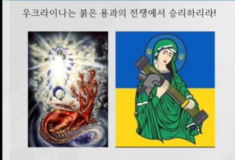 우크라이나(해를 입은 여인) 러시아(붉은 용) 사태와