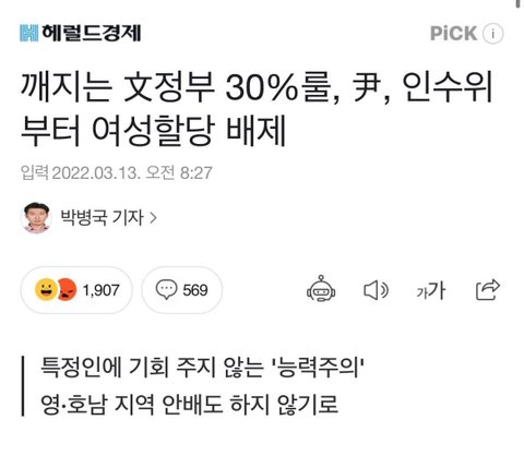 고위직 여성할당은 기본중 기본으로 해야되는건데 차기정부는 벌써부터 기본조차 없네요….