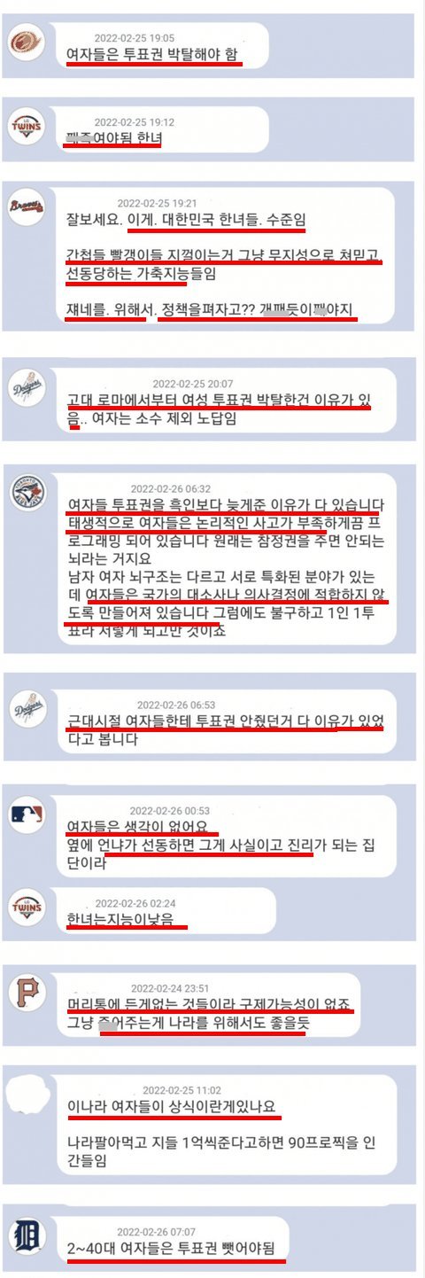 해당 글이 올라오자 커뮤니티 회원들은 자신의 목격담을 공유하며 ‘2번녀 색출’에 나섰다. 이 과정에서 회원들은 솔로가수 전소미, EXID 멤버 하니, 소녀시대 멤버 태연, 트와이스 멤버 나연 등을 거론했다. 전소미는 대선 당일 투표를 완료했다는 글을 인스타그램에 적었는데, 배경이 붉은색이라는 이유로 비난을 받았다. 나연은 개인 소셜미디어(SNS)에 붉은색 풍선 모양의 이모티콘을 올렸다는 것이 근거로 제시됐다. 이에 대해 회원들은 “(여자가) 남성 권익을 대변한다” “소름돋는다” “건방지다” 등 원색적인 비난 댓글을 개재했다.