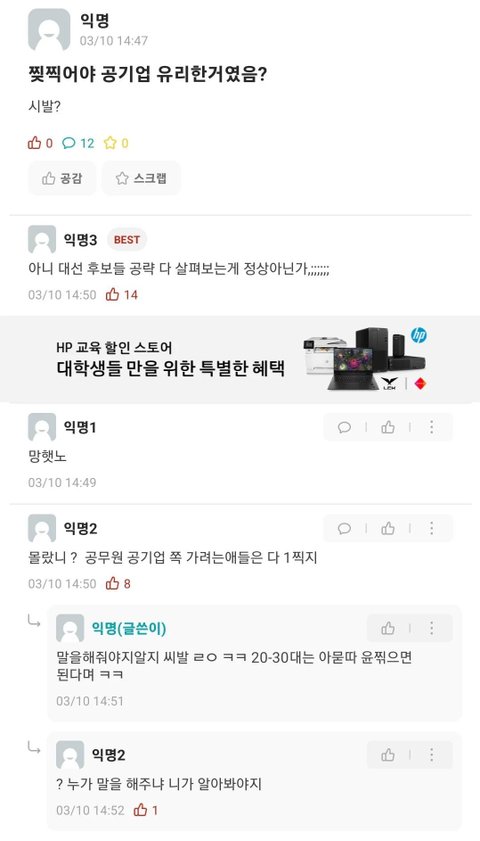 그래서 대부분이 학생 혹은 백수일 20대 2번남이 윤찍고 남은게 뭘까??