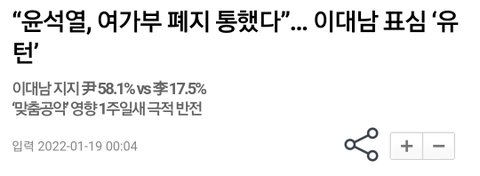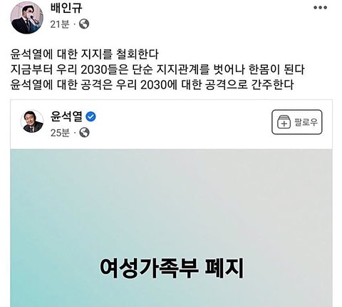 일단 윤석열이 여가부 폐지 공약 내세운뒤 20대남 지지율은 20퍼에서 58로 떡상했음. 펨코신남연에서도 좋다고 난리났었음. 여가부 폐지 때문에 윤찍은거 아니라고 발뺌하지 말길.