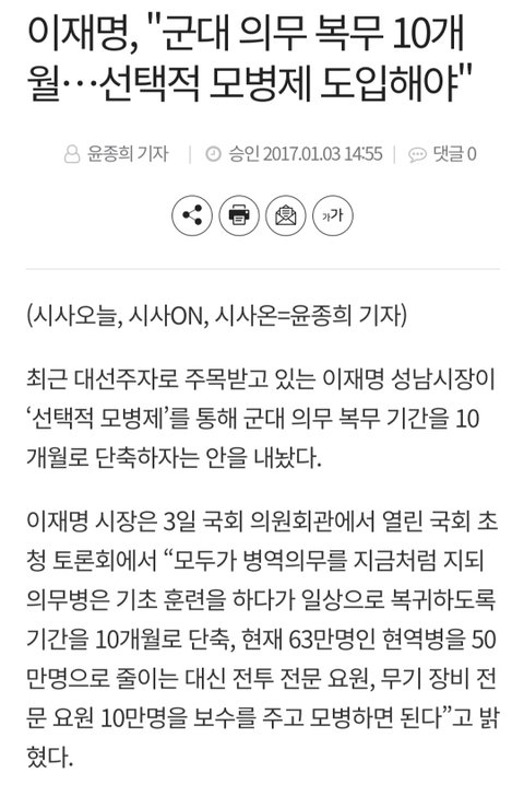 그리고,,,군복무 10개월 (선택적 모병제+직업군인 늘리기. 공약에도 있었음.)