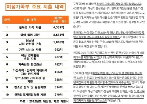 1. 여가부 예산은 1조. 정부부처 예산중 가장 적음. 여가부성인지 예산 35조라는건 가짜뉴스.