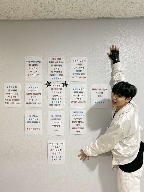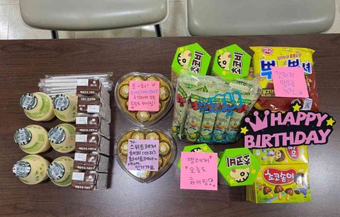 트레저멤버들 간식에 포스트잇 적어주고