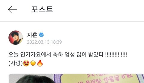 이쁨받는거같아서 너무 좋다ㅠ 인기가요 선생님들 사랑해요... 사심인가 지훈이 두번이나 해주시고 마이트레저 활동땐 트레저 직캠 썸넬에 누끼도 따서 넣어주시더니