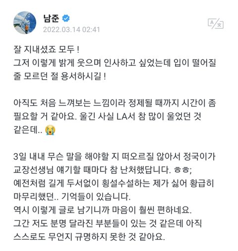 진짜 저거 보자마자 바로 눈물남 이제 탈덕은 없다 각오해라 방탄