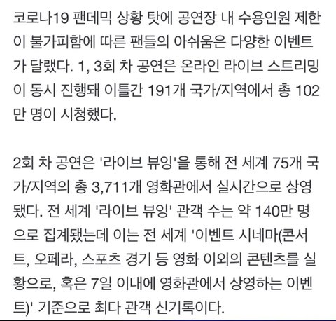 극장 라이브뷰잉으로 75개국 3711개 관에서 140만명