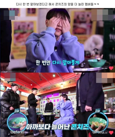 콘치즈의 양을 더 늘린 멤버들ㅋㅋㅋㅋㅋㅋ