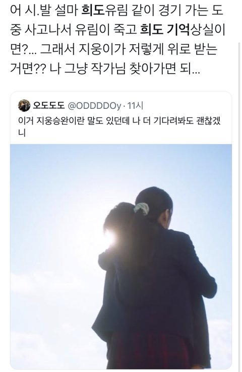 오ㅐ 아무도 언급 안함? 과거에서 희도발에 멍들었을때는 유림이랑 희도 둘다 아무렇지도않게 넘겼는데 현제 희도는 민채 발에 멍든거 보고 엄청 놀라면서 나중에 큰일 생길수도 잇다고 병원가자고 함 유림이 유서 보면 요즘 펜싱이 잘 안된다 이런 얘기 있는데 유림이가 발톱에 멍이 들었는데 알고보니 그게 큰 병이어서? 유림이가 펜싱 그만두게 되거나 극단적으로는 죽게 되고 그걸 옆에서 죽 지켜본 희도는 민채 발에 멍든거 보고 놀라면서 병원가자고 한거아님?