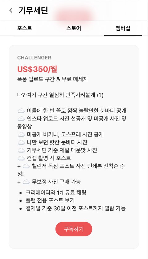라이키라고 돈을낸 팔로워한테만 비공개사진을 보여주는게있음 젤싼 구독료가 10달러고 젤비싼건 350달럳ㄸㄸㄸㄸㄷ 못해도 한달에 천만원은 벌듯 ...ㄷㄷ