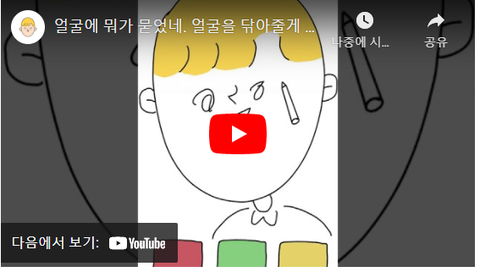 얼굴에 뭐가 묻었네. 얼굴을 닦아줄게
