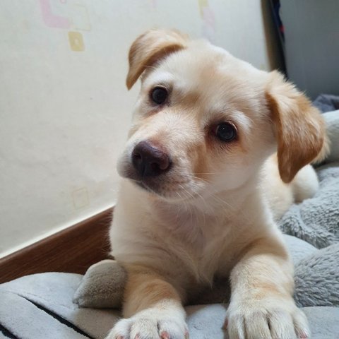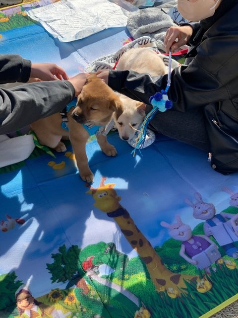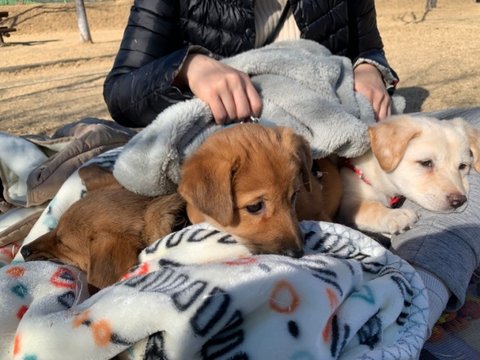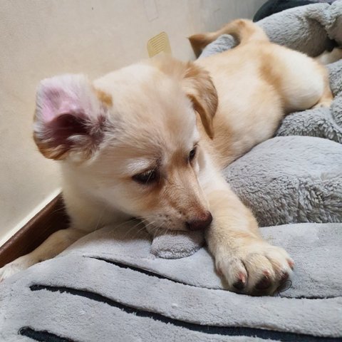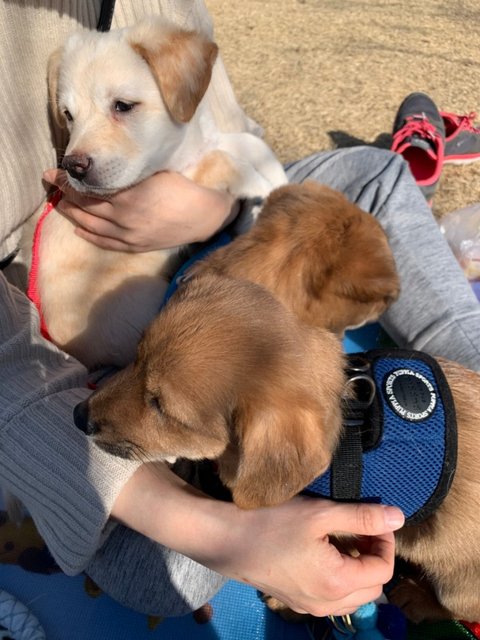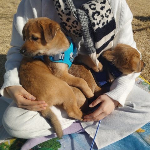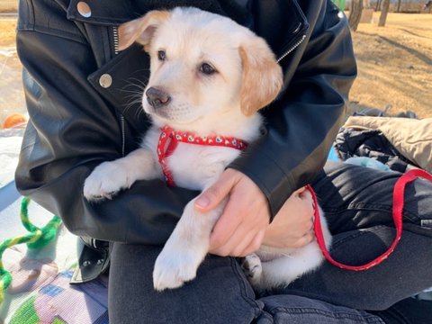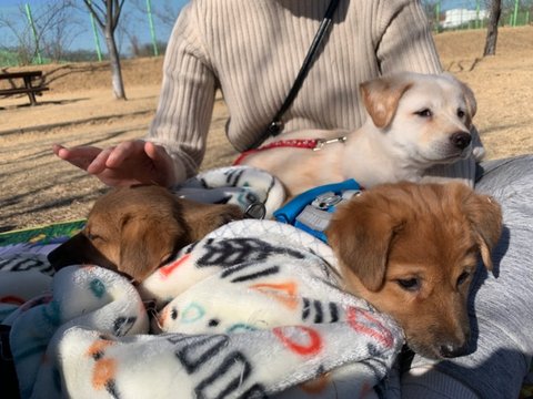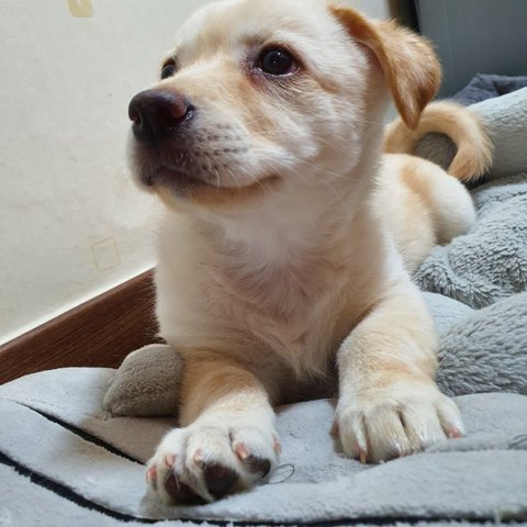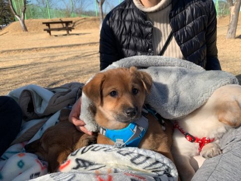 노랑 - 여아, 황구, 다리가 길어요. 털이 부들부들해요. 잘 놀아요.