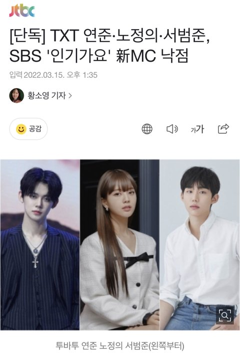 투바투 연준 노정의 서범준 인기가요 엠씨 발탁
