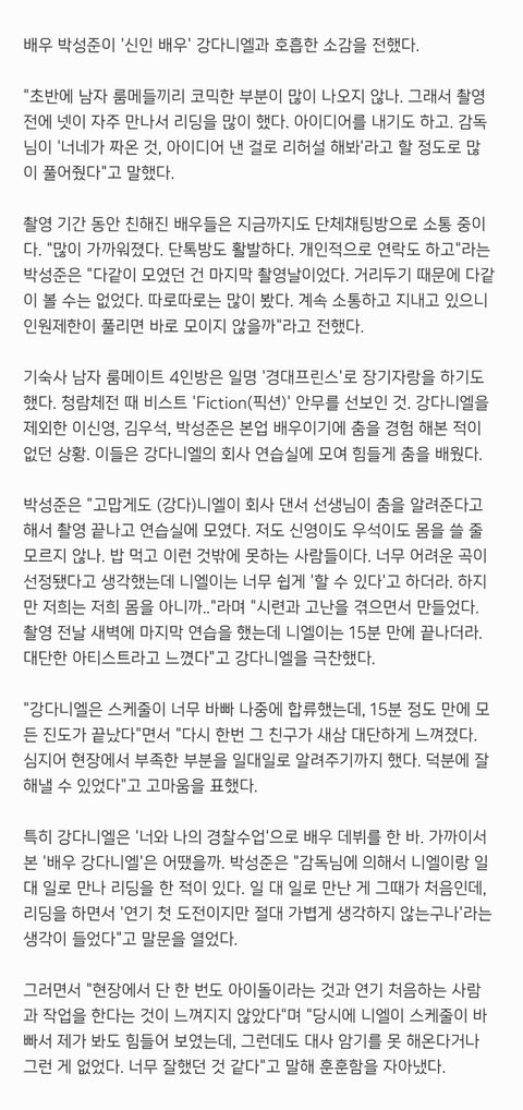 [현장에서 단 한 번도 아이돌이라는 것과 연기 처음하는 사람과 작업한다는 것이 느껴지지 않았다. 니엘이 스케줄이 바빠서 제가 봐도 힘들어 보였는데, 그런데도 대사 암기를 못 해온다거나 그런게 없었다. 너무 잘했던 것 같다.]