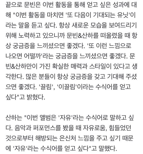 + 이번 유닛으로 문빈, 산하가 얻고 싶은 성과