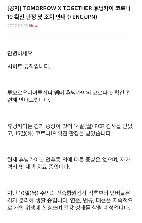 공지 뜨고 바로 찾아온 우리 휴닝 ㅠㅠ