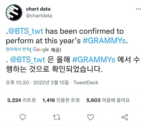 드디어 그래미 단독 무대를 하네 그것도 현지에서!!! ㅈㄴ자랑스럽다 ㅠㅜ
