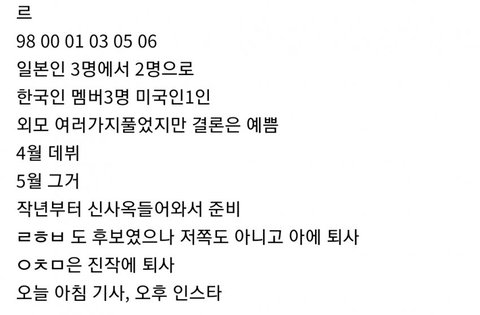 이 계자가 이전에 올린 썰들 종합해보면 멤버 수정이 있었고 1월에야 최종 확정 됐으며 트윗등에서 퍼진 비공멤 루머는 다 아니라고함