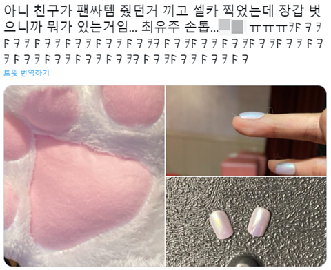 유주한테 팬이 고양이 장갑을 줬음